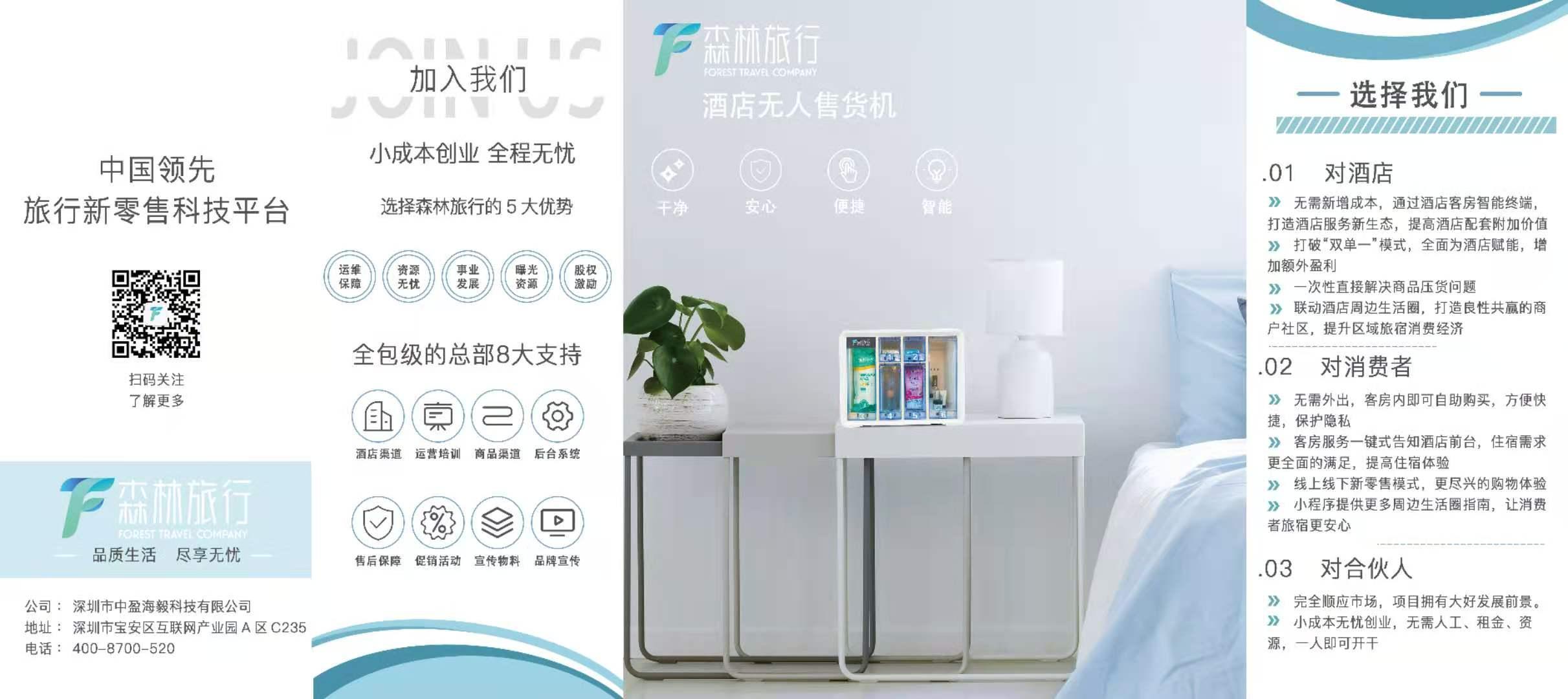 疫情过后酒店和旅游业会井喷式爆发,同时国家新政策下,酒店开始慢慢不免费提供六小件,再加上很多的酒店负面,很多人已经开始不敢使用酒店提供的毛巾和各种物品。这个时候非常需要我们酒店无人售货机设备,现在全国很多酒店也都跟我们签约合作,我们铺设机器和商品,给酒店赋能也给顾客提供安全便利的商品购买体验。解决了酒店和顾客的很多痛点。前景巨大,我们森林旅行是全行业内唯一一家做多元化产品,门槛低,政策优,主打日常护理产品,洗卸产品,卫生用品等等当然也少不了国家硬性要求的计生用的避孕套了。投入2万元,你可以坐享森林旅行赠送的5家酒店资源和100台机器和长久免费供应商品,接手就可收益,每天躺赚。啥多不需操心,一切由我们来运营维护。更多详情找我详谈 联系我时,请说是在季晨网看到的,谢谢!